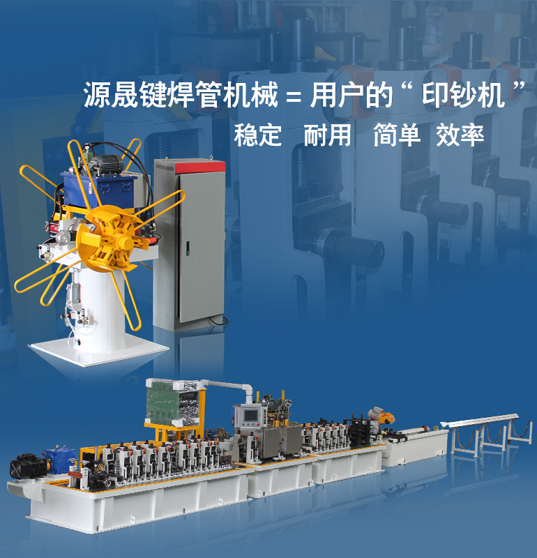 佛山市源晟鍵焊管機械模具有限公司成立于2008年,是集科、工、貿為一體的從事研發制造,銷售:大口徑不銹鋼制管機,高頻直縫焊管機組,工業不銹鋼制管設備,精密鈦合金管焊管設備,焊管模具,冷彎成型模具,方管模具,異型管模具,及配套輔助設備。公司是具有設計、生產、銷售、售后一條龍專業化服務的創新型高新技術企業,是國內具有規模的專業焊管機械模具制造商之一。